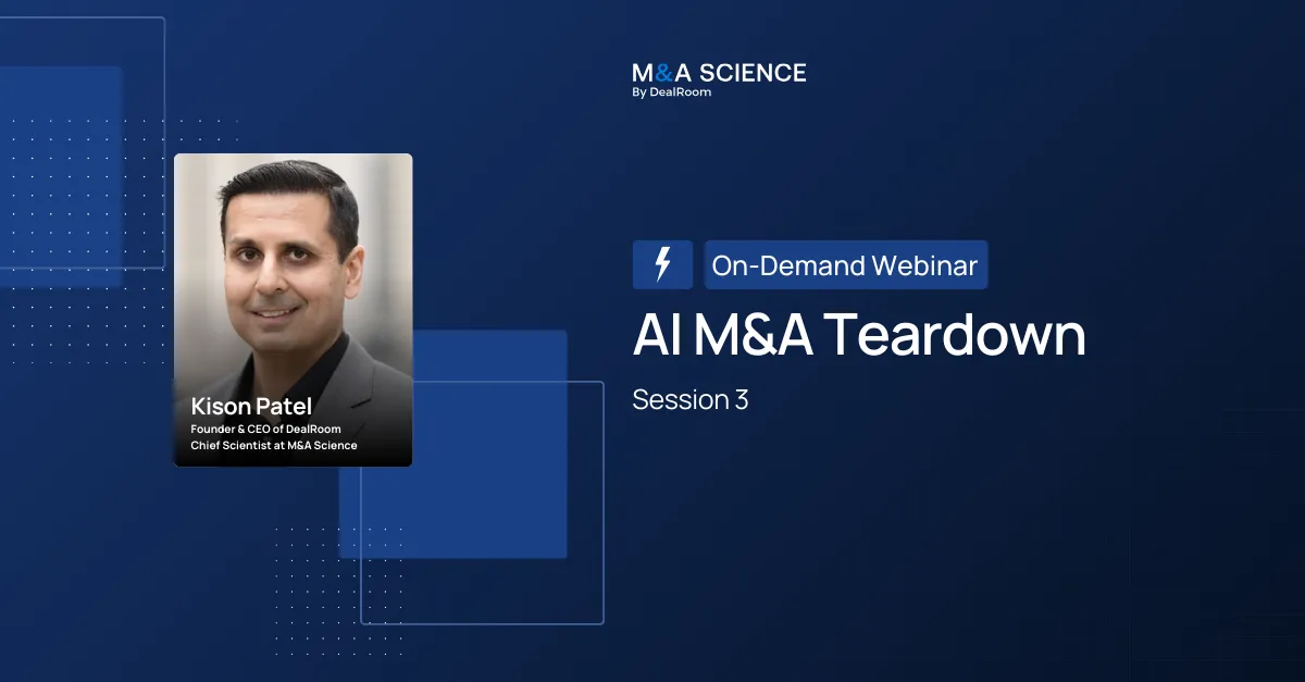 Watch the third session in our virtual series: "AI M&A Teardown" now available on demand. Created by M&A Science, this series is designed to empower M&A professionals with the knowledge and tools to leverage AI in transforming deal-making processes. This series stands at the intersection of technology and tradition, challenging the norms and showcasing how data-driven insights can redefine success in M&A.