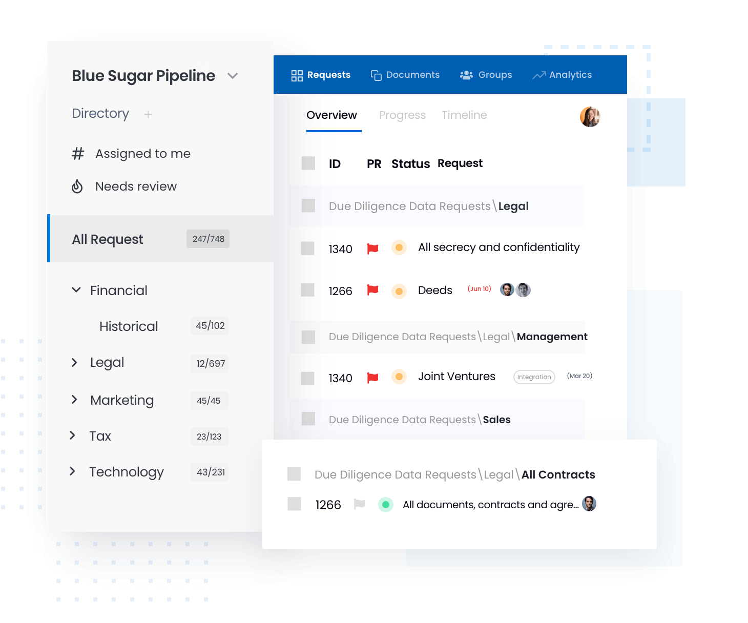 While most M&A project management tools are primarily designed for internal use, DealRoom also facilitates requests with the target company and various third parties all in one process.