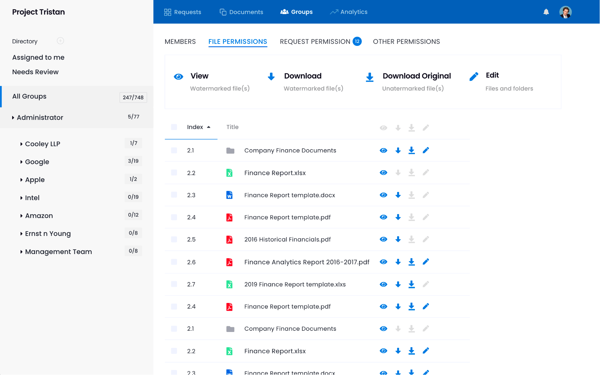 Manage multiple M&A transactions using the virtual data room’s pipeline management feature. Pipeline management helps users effortlessly organize and view current summaries of various projects.