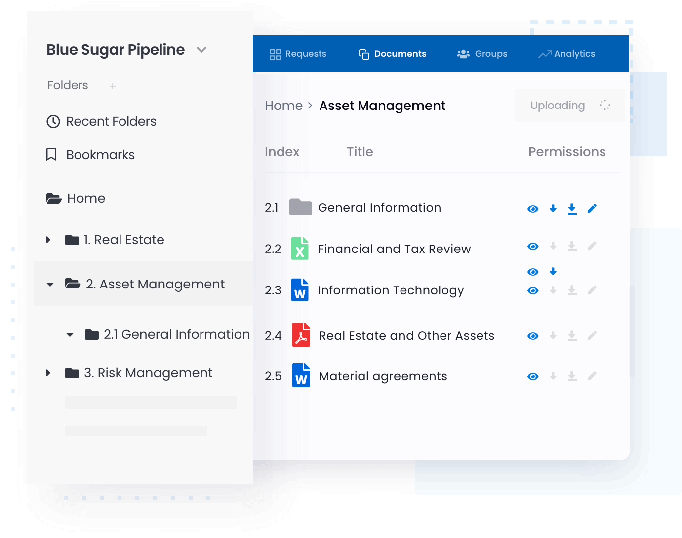 Complete diligence requests, communicate, and manage documents on one platform by eliminating the need for Excel, emails and traditional data rooms.