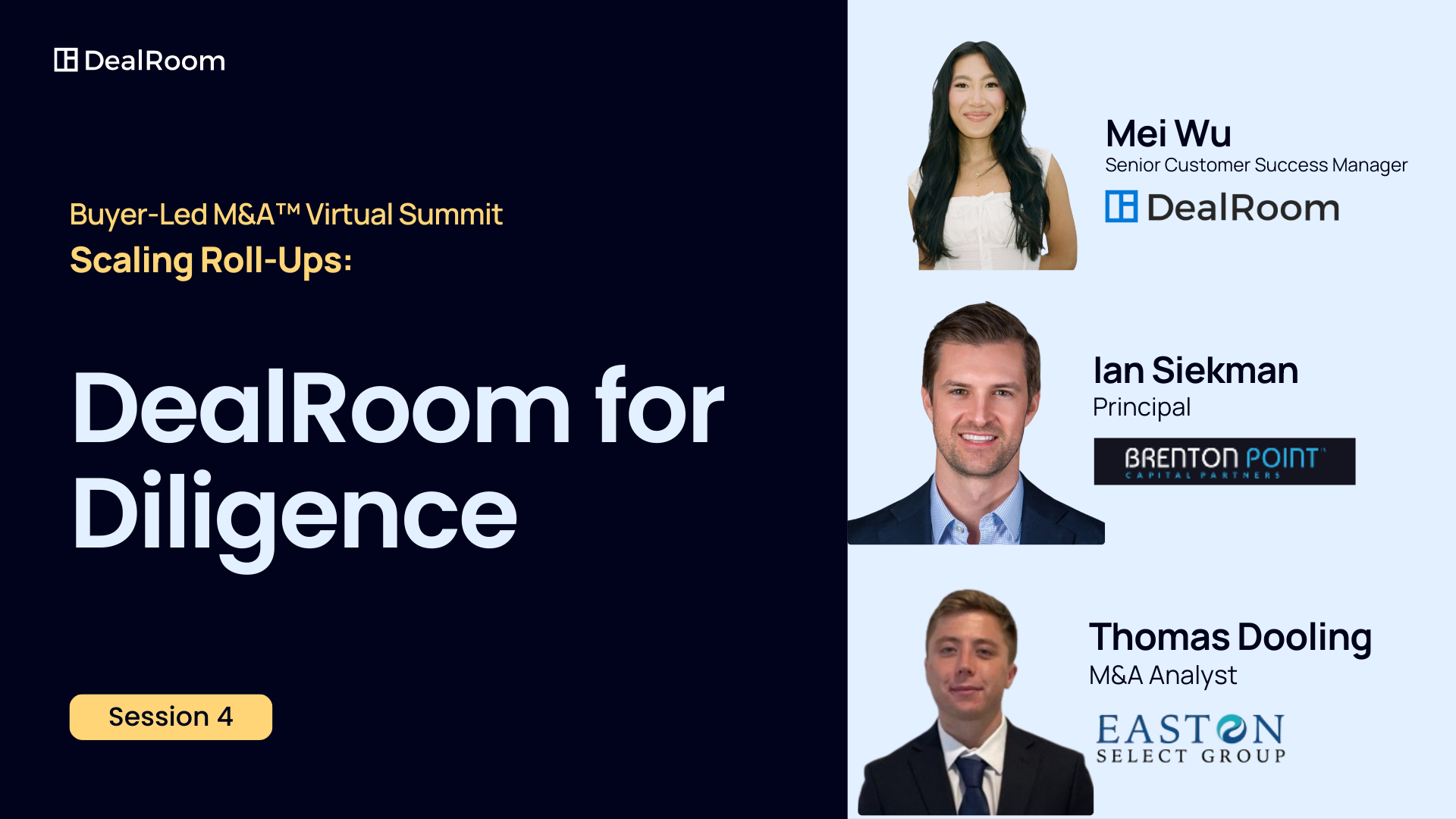 Discover first-hand how DealRoom can transform your M&A process. Book a demo to see how easy it is to manage deals, streamline due diligence, optimize integration, and more all in one platform.