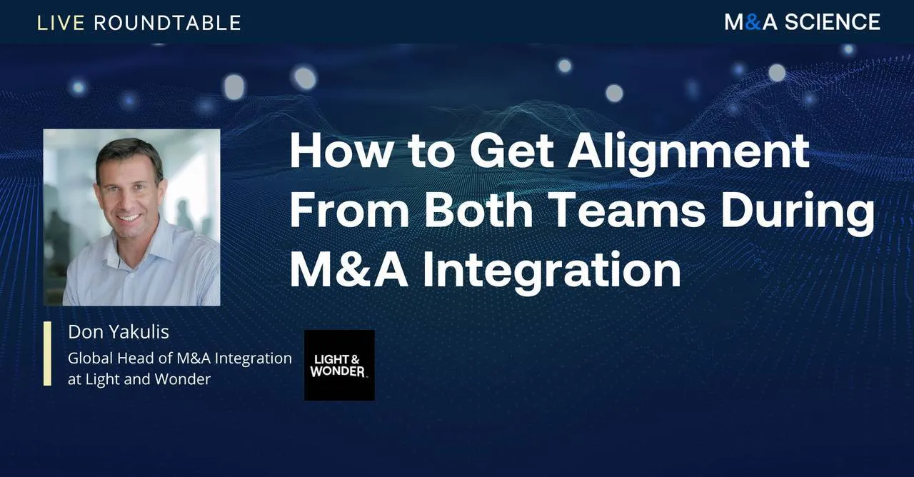 In this webinar, Don Yakulis, Global Head of M&A Integration at Light and Wonder, discusses the importance of achieving alignment from both teams during M&A integration.
