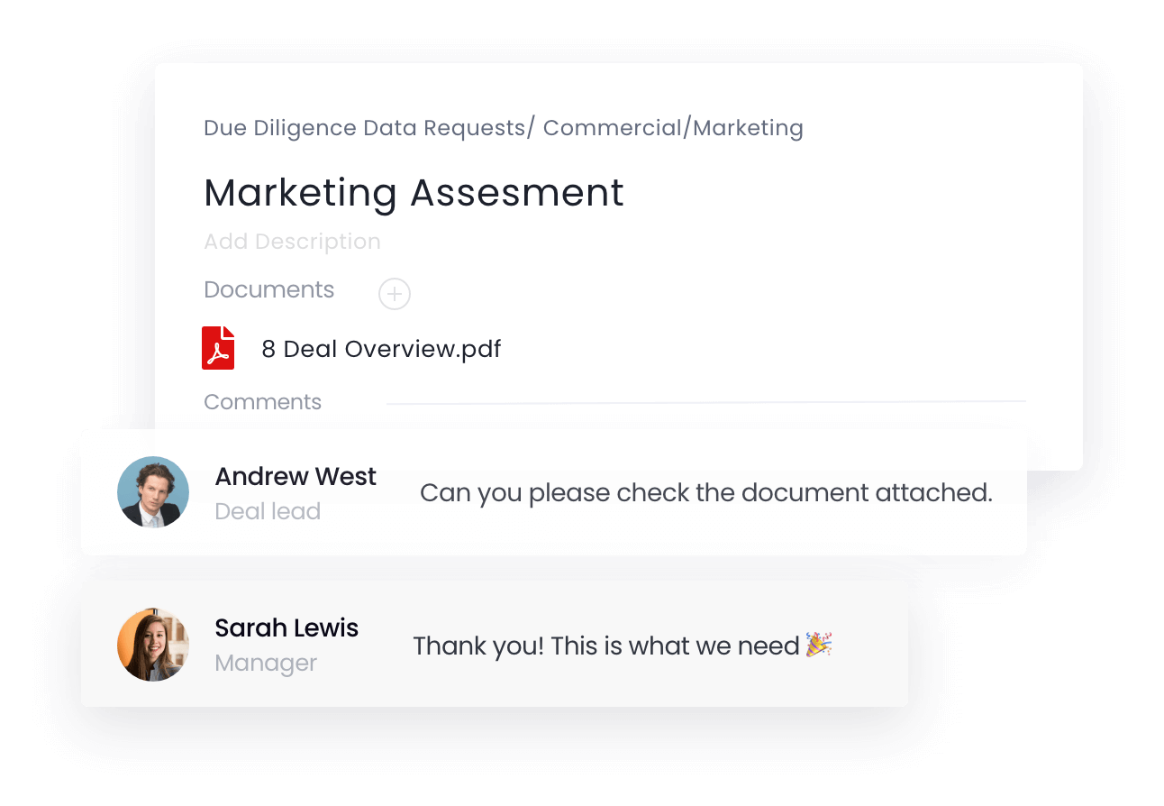 DealRoom’s M&A management software & tools empower communication, delegation, and accountability.