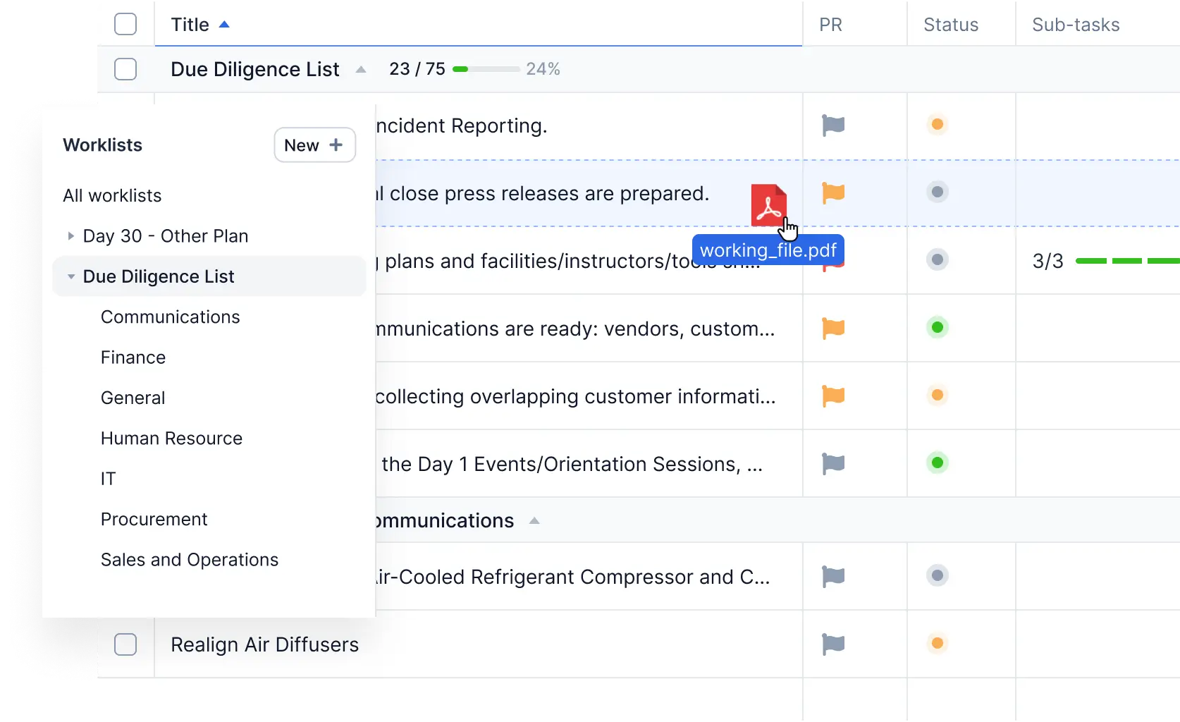 Every M&A process is unique. Customize DealRoom to mirror your workflow, ensuring the platform works for you, not the other way around.Dynamic Progress Tracking:
