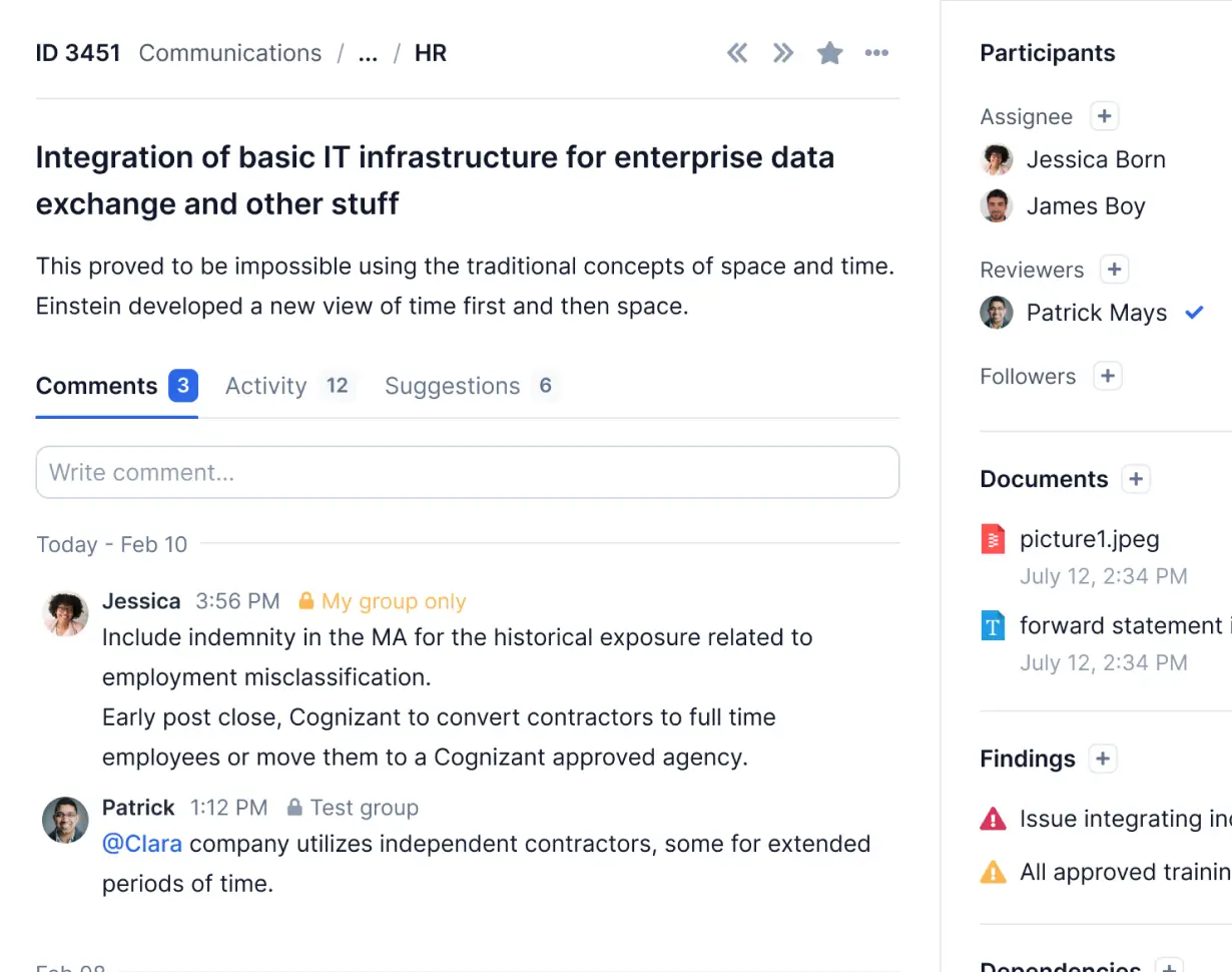 - Ensure timely responses and action on feedback with @requests and task due dates