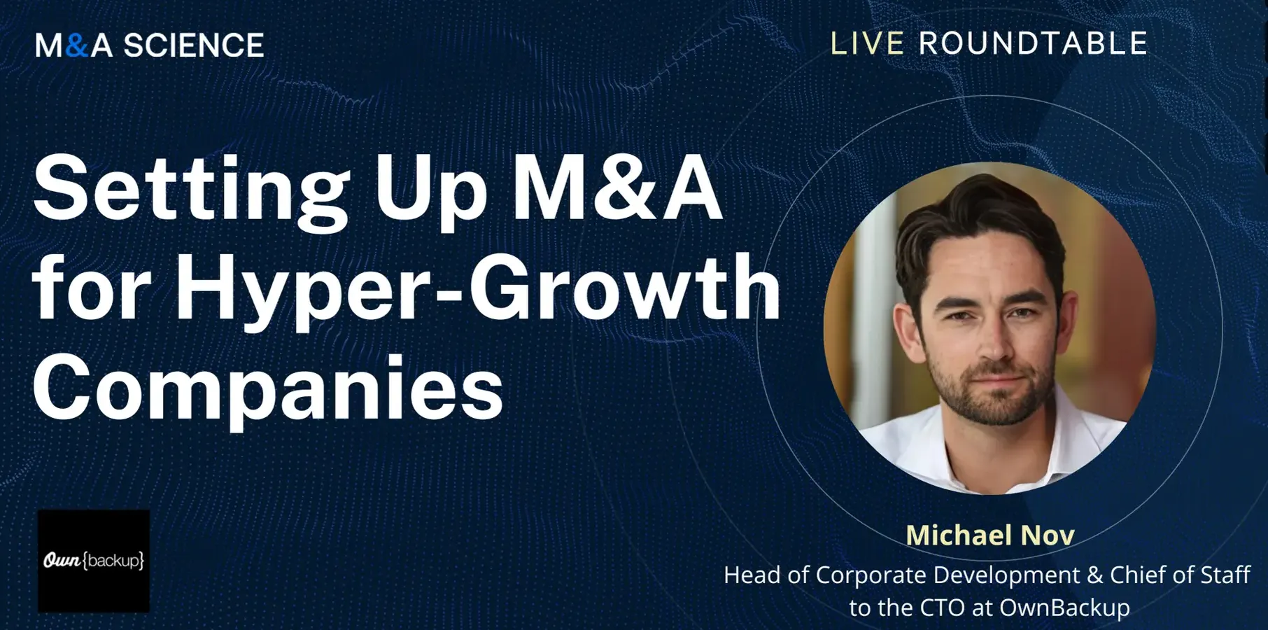 In this episode of the M&A Science Podcast, Michael Nov, Head of Corporate Development & Chief of Staff to the CTO at OwnBackup, discusses how to set up M&A for hyper-growth companies.