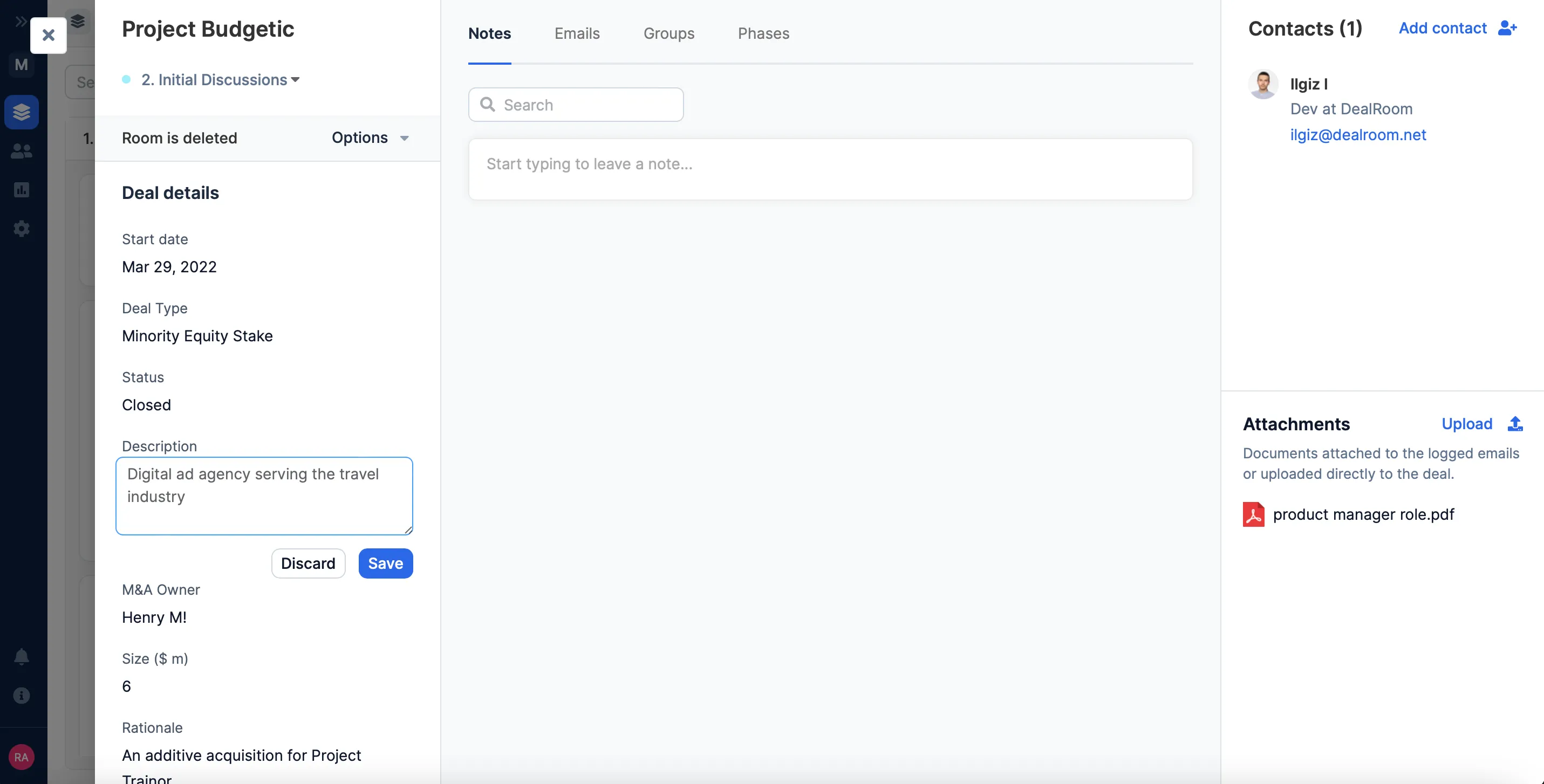 Users can upload attachments directly to deals.