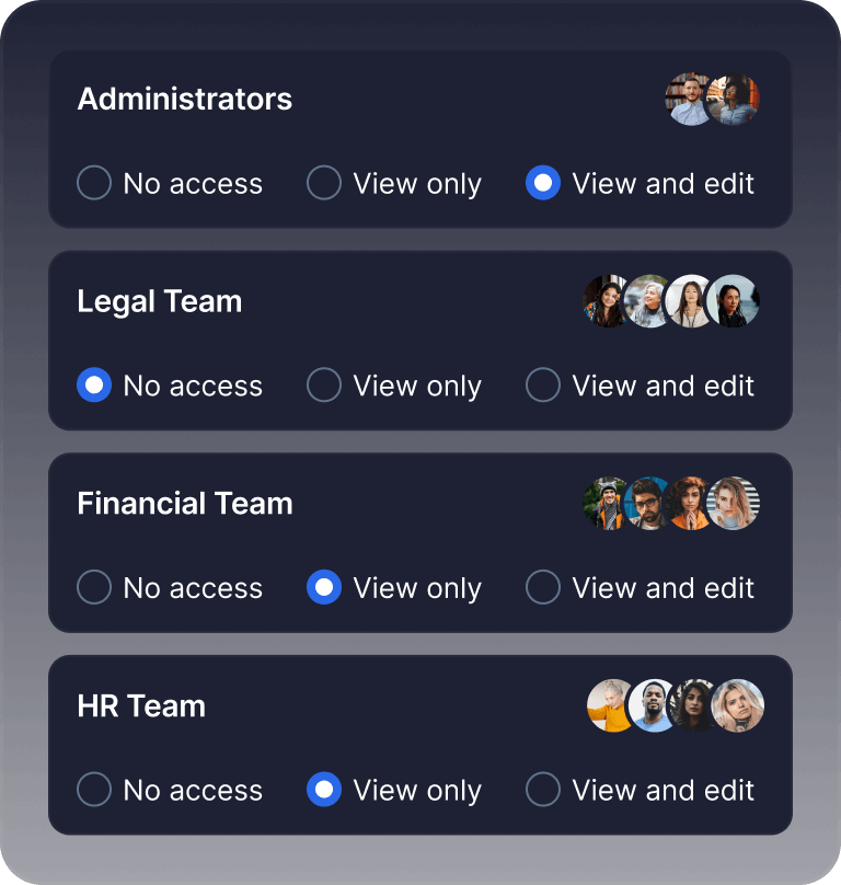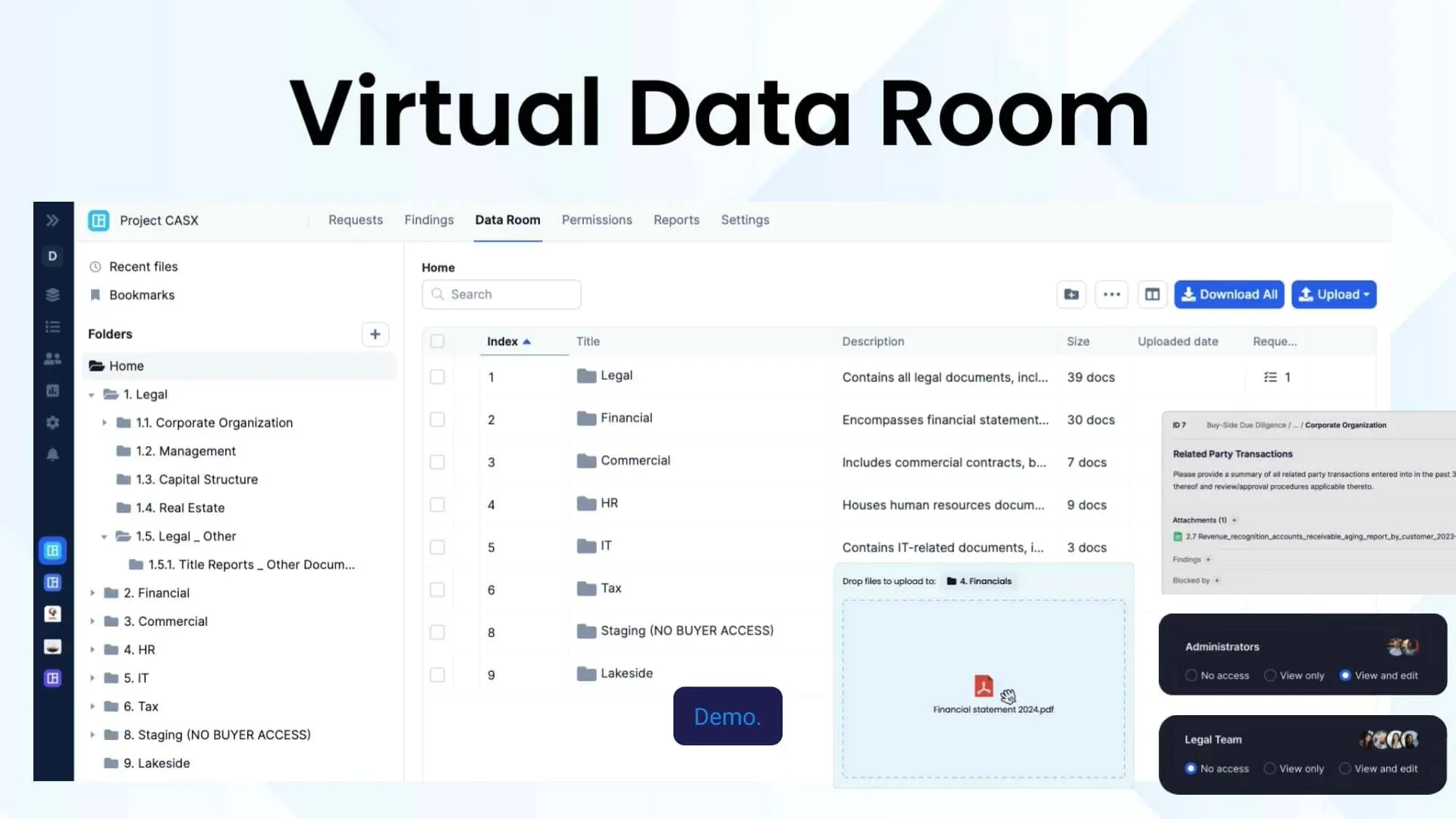 Set specific permissions for who can view, download, or edit documents within the VDR.