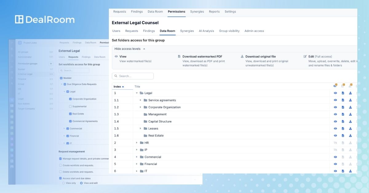 A single source of truth for all deal-related data, files, communications, and reporting.