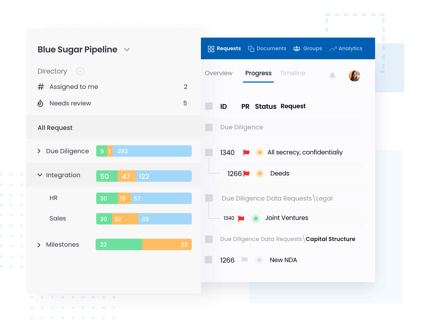 While most M&A project management tools are primarily designed for internal use, DealRoom also facilitates requests with the target company and various third parties all in one process.