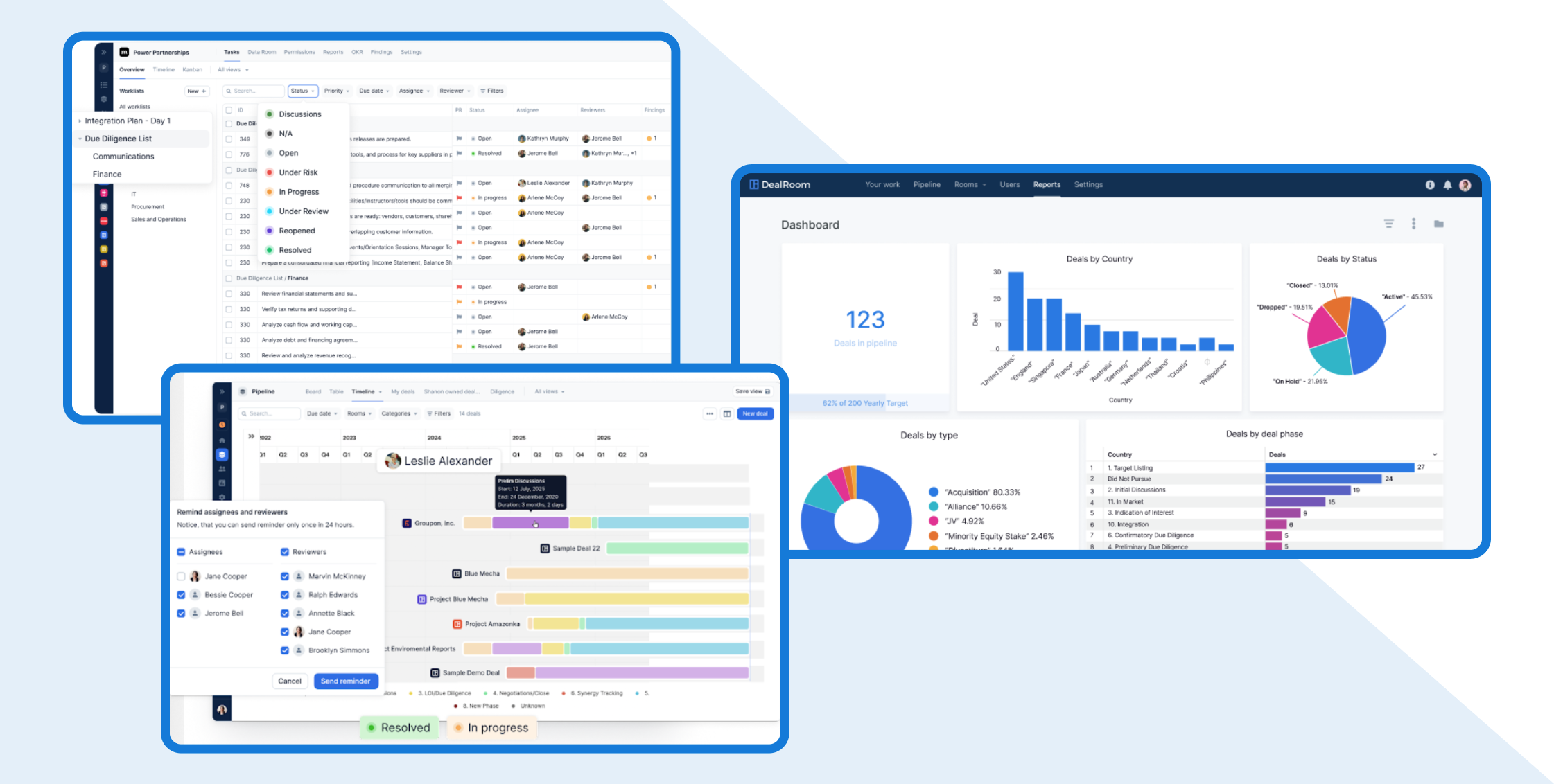 DealRoom M&A Platform also includes project management tools that work with all the modules mentioned above. To explore additional functionalities and discover more hidden features, click here.