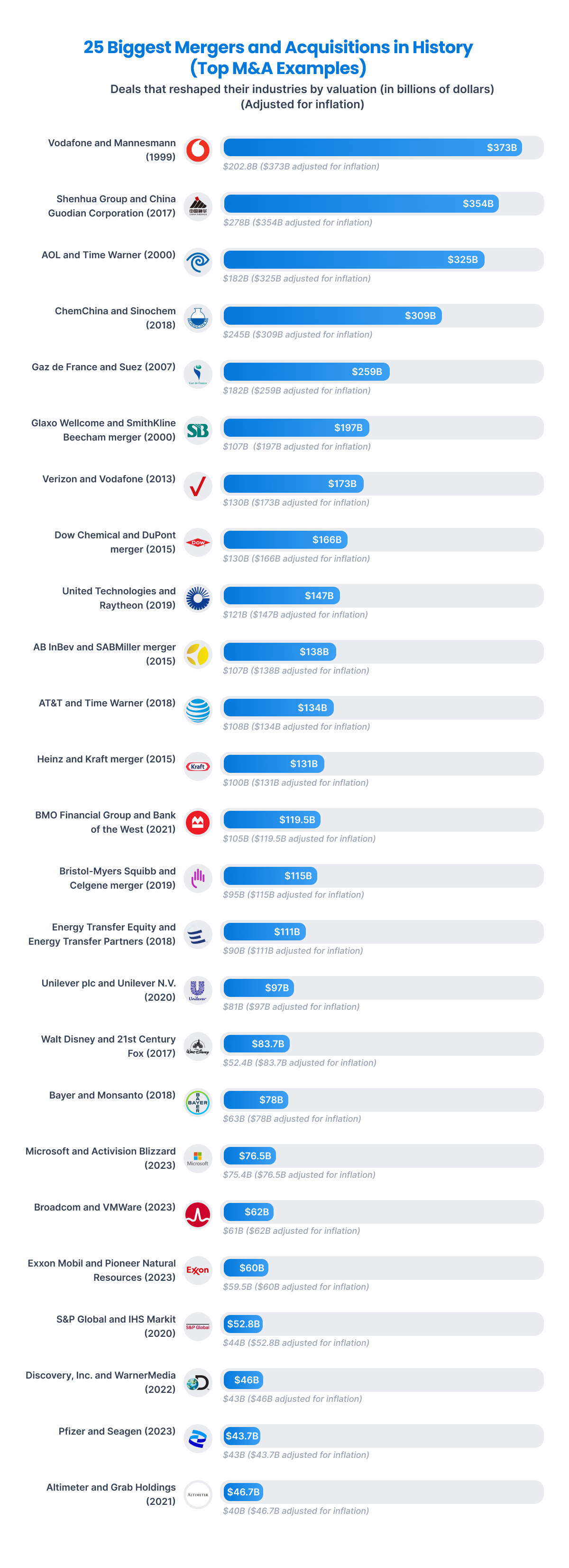 At DealRoom, we help companies evolve and streamline multiple large and successful M&A deals each year. In this article, we collected some of the biggest deals in history.